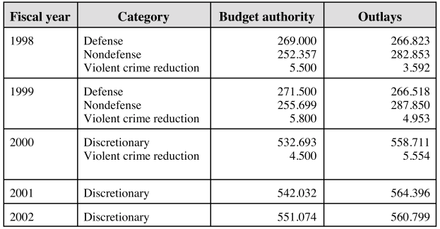 Note: The amounts of budget authority and outlays shown in the table are taken from the text of the BEA of 1997 and do not reflect any subsequent automatic adjustments, as provided for under law.